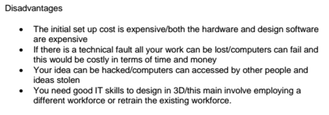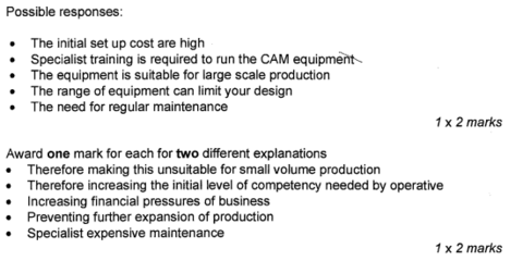 Give two disadvantages of using CAM equipment to manufacture products. | |