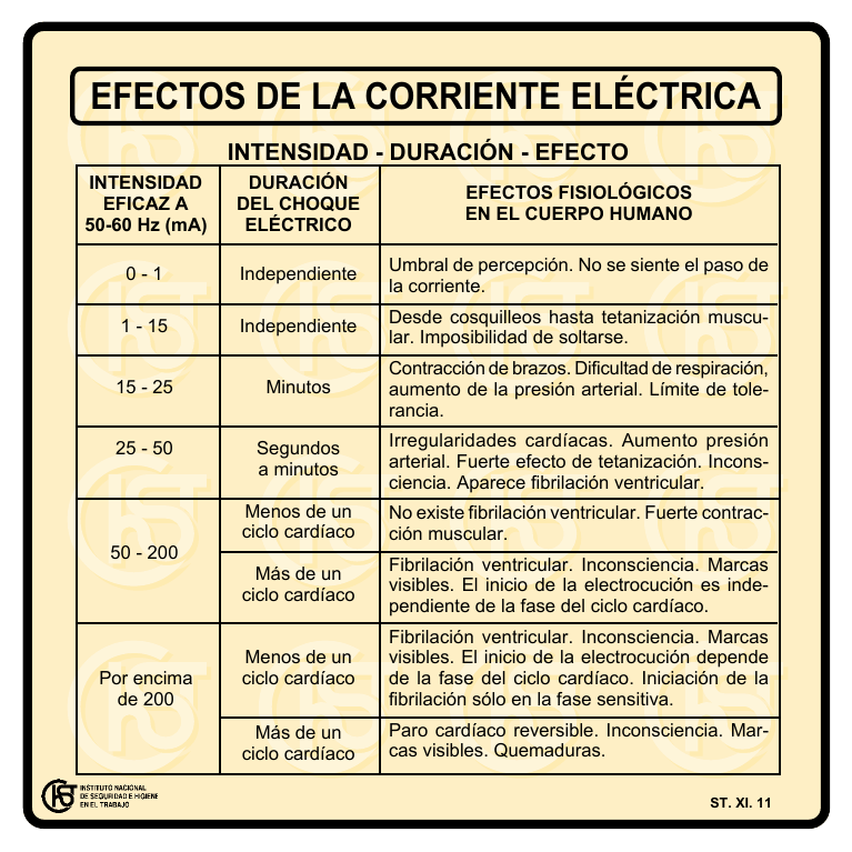 | EFECTOS SEGÚN EL VALOR DE LA CORRIENTE | |