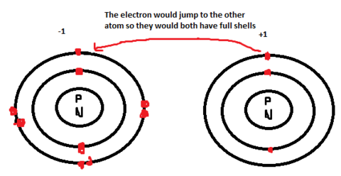 | A diagram of electrons jumping to another atom | |