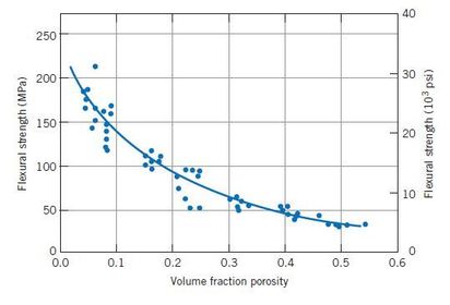 | Porosity | Found in powder processed ceramics. Reduces strength, toughness and thermal shock resistance of ceramics since pores act as stress concentrators and reduce the cross-sectional area taking the load. |