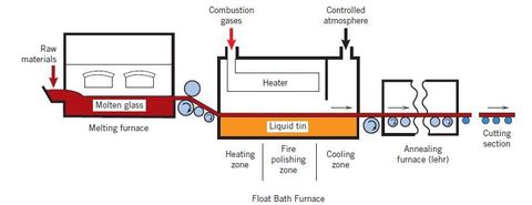 | Sheet (Float Processes) | Molten glass is made to roll over liquid tin. Glass floats since it has a lower density than tin and surface tension will cause the glass to spread uniformly. Top and bottom surfaces are fire-polished with heaters and liquid tin respectively. Once annealed they are cut into sheets. |