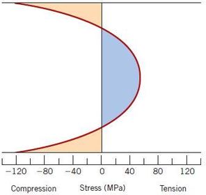 | Fracture | Brittle fracture is the result of crack propagation in the direction perpendicular to the applied load. Cracks start as stress concentrators at the surface such as pores, microcracks and defects. These cannot be healed since no plastic deformation occurs. Measured fractured strength is lower than theoretical due to the presence of defects. Fibres are stronger than bulk materials since there is less chance of finding a defect. Compression does not concentrate stress at the defects and so ceramics are much stronger in compression than in tension. |