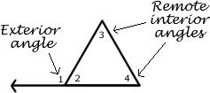| Remote Interior Angles | Angles in a interior that not adjacent to exterior angles |