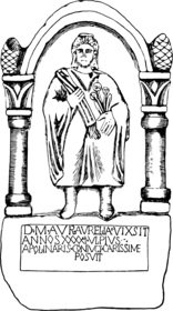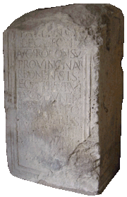 | Statue Base Caerwent "Civitas Silurum" - pays reference to the Civitas Capital of the Silures tribe - one of the most difficult tribes to overcome in Britain - tells us that they had a local council -Ordo and it also tells us that Paulinus was a Legionary Commander before he returned as Governor of Britannia Inferior in AD220 | |