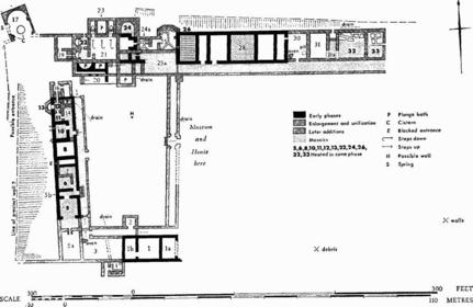 | Chedworth Villa - central zone Features: Water Shrine, double courtyard, built AD180-350? Four seasons Mosaic - dining room | |