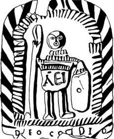 | Silver Plaque of Cocidius- Celtic Deity of Hunting Found at Bewcastle on Hadiran's Wall Votive Plaque Holds a Spear and a shield - associated with Mars | |