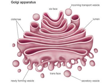 | Aparato de Golgi | Selecciona sustancias acorde a su destino; modificando a algunas de ellas y envolviéndolas en vesículas. Éstas se llevan a otras partes de la célula o a la membrana celular mientras son enviadas a la parte del cuerpo donde se necesitan. |