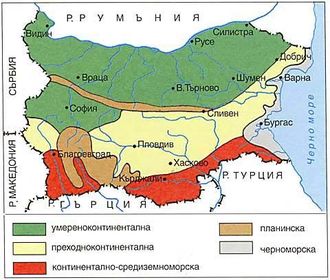 Климат /допълнение/ | - на С - над 1000 м. планински, под 1000 м. умерено конт. - на Ю - над 1000 м. планински, под 1000 м. преходно |