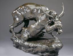 | Artist: Bayre Period: Northern Romantic Title: Panther Attacking a Stag | |