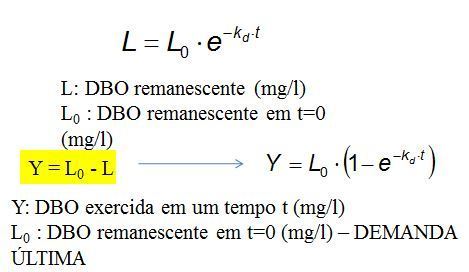 | DBO remanescente: DBO exercida: | Remanescente (L e Lo): [ ] de MO remanescente Exercida (Y): oxigênio consumido para estabilizar a MO |