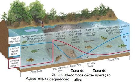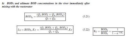| Concentração de DBO5 e da Demanda última no rio após a mistura com esgoto - Para DBO última na mistura, multiplicar por KT. - Tudo é com DBO5. | |