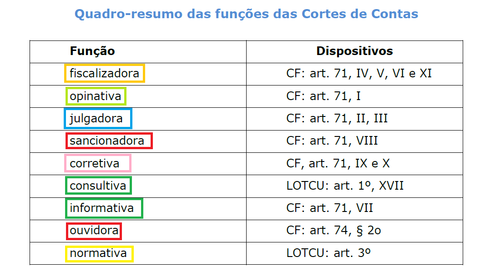 | TRIBUNAIS DE CONTAS FUNÇÕES | QUADRO-RESUMO DAS FUNÇÕES DAS CORTES DE CONTAS |