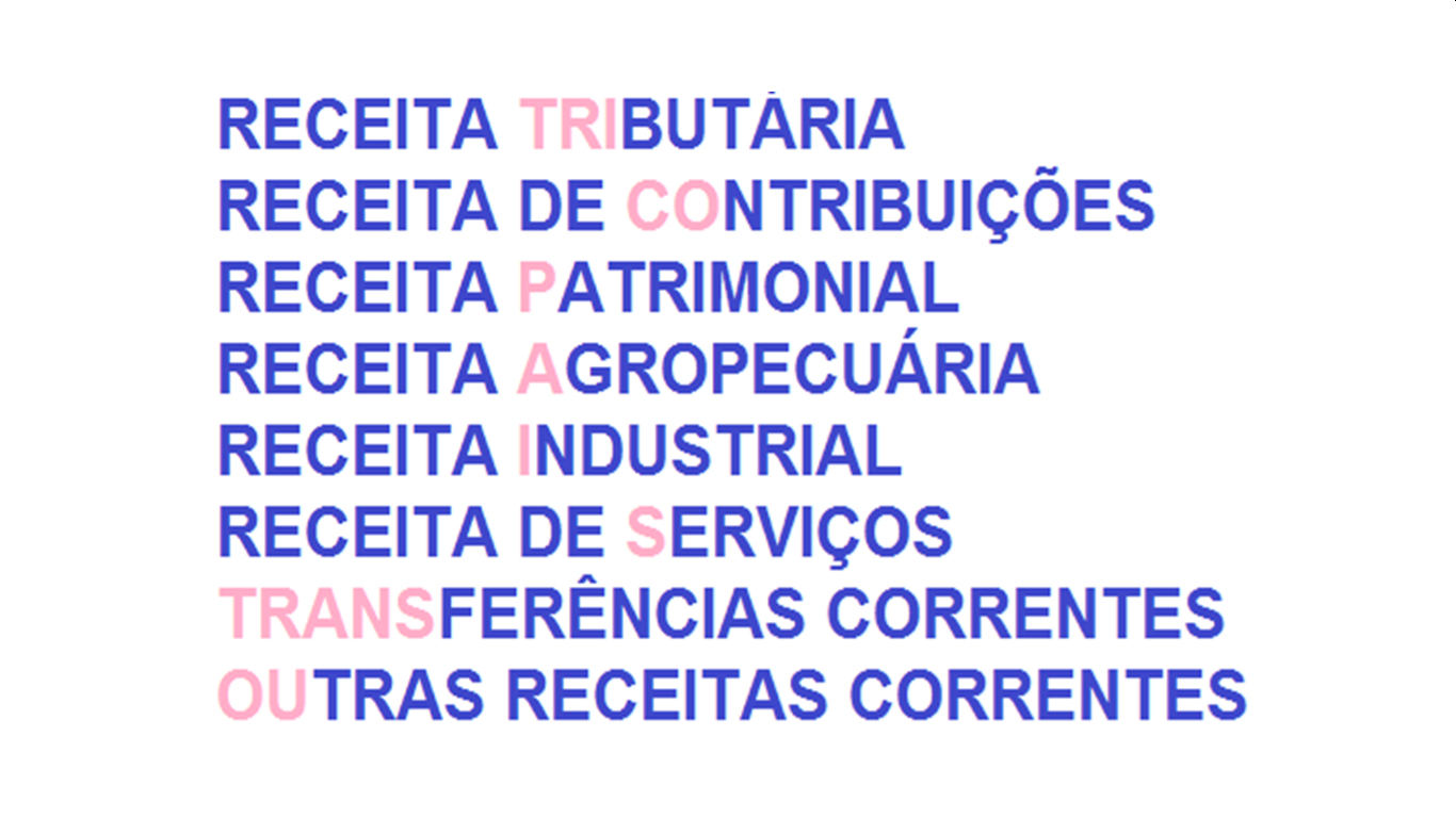| CATEGORIAS ECONÔMICAS RECEITAS CORRENTES | SÃO RECEITAS DE CUSTEIO SERVE P/ SUPORTAR A MANUTENÇÃO E FUNCIONAMENTO DA ATIVIDADE ADMT. |