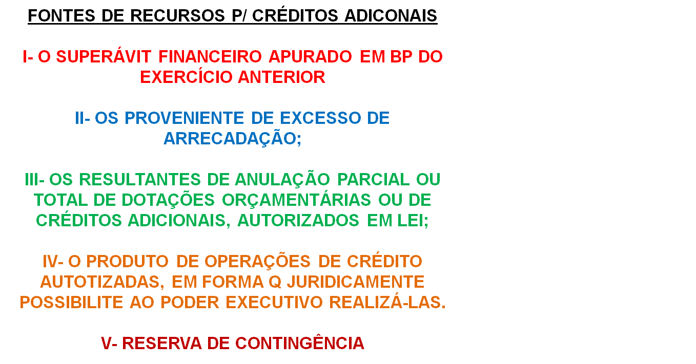 | FONTES DE RECURSOS P/ CRÉDITOS ADICIONAIS | |