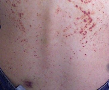 | 1. LESÃO 2. CLASSIFICAÇÃO 3. CAUSA | 1. PETÉQUIAS 2. MANCHA HEMORRÁGICA (PÚRPURAS)/TRANSITÓRIA 3. EXTRAVASAMENTO SANGUÍNEO |