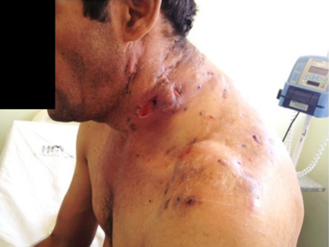 | 1. LESÃO 2. CLASSIFICAÇÃO 3. CARACTERÍSTICAS 4. CAUSAS | 1. FÍSTULA 2. PERDA TECIDUAL 3. PASSAGEM CUTÂNEA COM SAÍDE DE PUS, SANGUE... 4. MICETOMA + TUBERCULOSE GANGLIONAR |