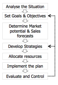 | Evaluate & Control | ESSENTIAL PART OF THE PLANNING PROCESS - Sets transparent standards - Sets benchmarks to assess performance E.g. sales volume, selling costs, market share, customer service, customer satisfaction) |