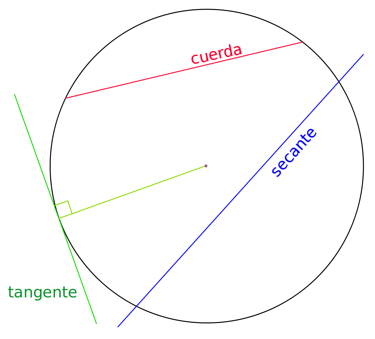 | Cuerda de un circulo | La cuerda de la circunferencia es un segmento K que une dos puntos de la circunferencia sin necesidad de pasar por el centro. |