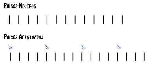 | 10. Si agrupamos pulsos de 4 en 4, de 3 en 3 ó de 2 en 2, ¿Cuál pulso se debe acentuar y cómo lo representamos? | El primer acento de cada grupo se debe acentuar, representado por un ángulo abierto a izquierda, colocado sobre el pulso a resaltar. |