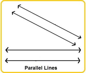 | parallel lines | Parallel lines are always the same distance apart, and will never touch. |