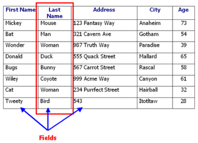 | What is a field? | A field in a database is made up of lots of different pieces of information for example a list of first names. |
