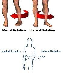 | Rotation | Rotating or pivoting around a long axis. Medial = inwards/towards the midline Lateral = outwards/away from the midline |