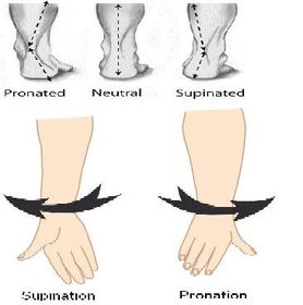 | Pronation | Rotating the forearm with the palm turning downwards or rolling of the foot inwards |