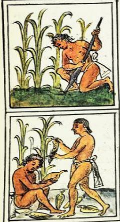 O milho constituía a base alimentar do povo asteca, tinha um papel central em sua mitologia. |