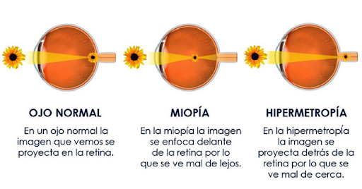 | *Medios refringentes: Permiten la refracción de la luz . 1.- Córnea 2.- Humor acuoso 3.- Cristalino 4.- Humor vítreo | |