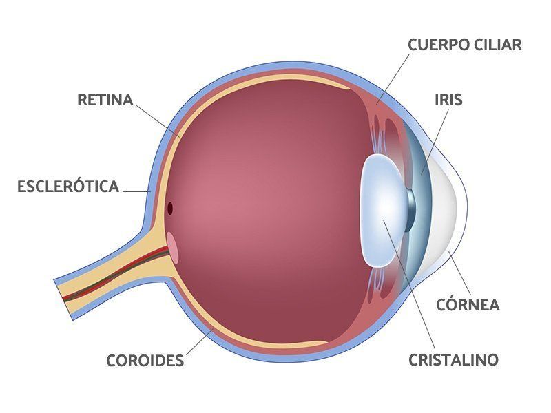 + Esclerótica: También es llamado el blanco de los ojos, ocula los 5/6 posteriores. - Presenta una región de inserción para los músculos oculomotores denominado , cápsula de tenon |
