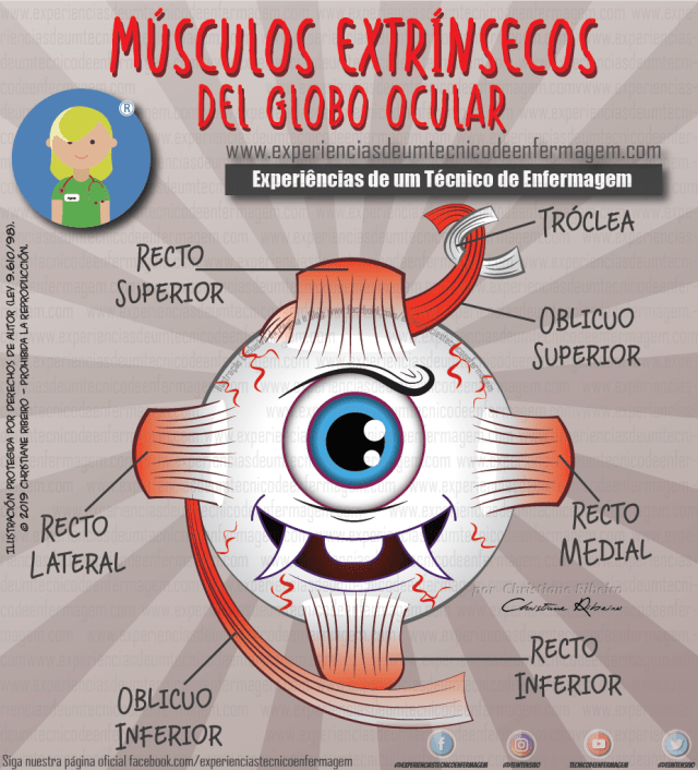 | 2.- Anexos del globo ocular a.- Músculo oculomotores o extrínsecos - Recto superior: Por III P.C, mirar arriba - Recto inferior: Por III P.C , mirar abajo - Oblicuo superior: Por IV look at nose tip - Oblicuo inferior:Por III m. afuera y abajo - Recto lateral ,Por IV m afuera abducción - Recto medial:Por III m. adentro abducción | |