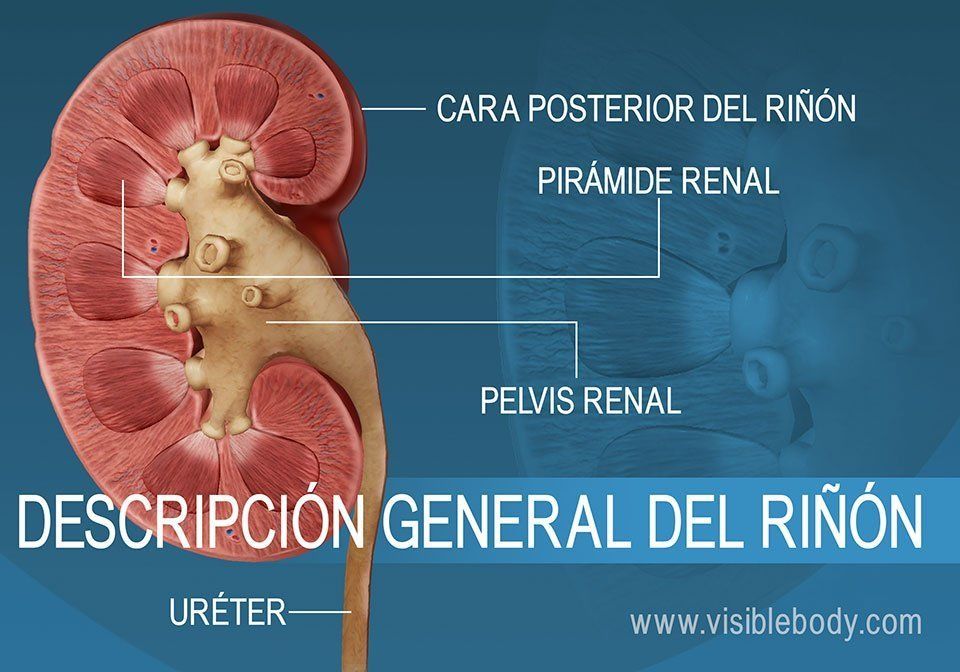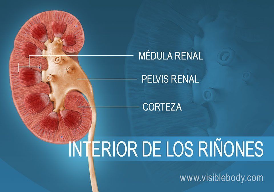 | B.- Morfología interna: - Corteza renal: Es pálida y granulosa (corpúsculo renal). - Médula renal: Es oscura y estriada , casas de henle y tubos colectores; presenta pirámides renales | |