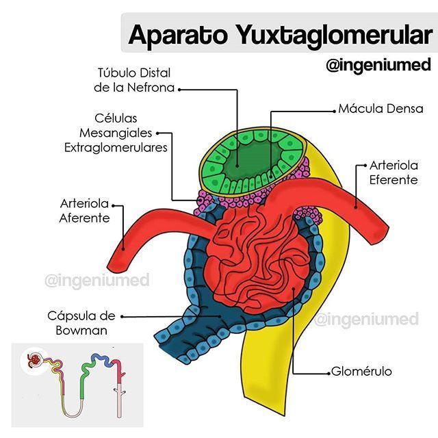 | 3.- Aparato yuxtaglomerular - Son células musculares lisas de la arteriola aferente - Secretan renina - Mácula densa: detectan cambios salinos | |