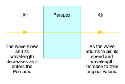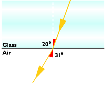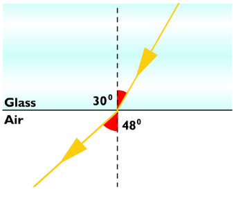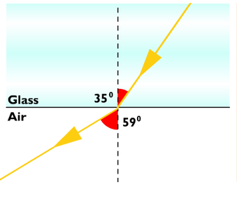 | Total internal reflection | Waves going from a dense medium to a less dense medium speed up at the boundary. This causes light rays to change direction when they pass from glass to air at an angle other than 90º. This is refraction. |