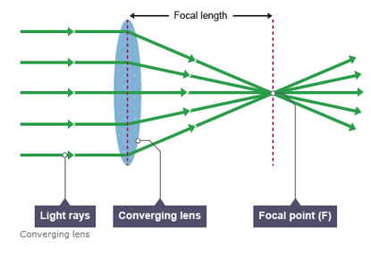 | Converging lenses | These are thicker in the middle and focus light on a specific point called the focus. When the object being viewed is close to a converging lens, it acts like a magnifying glass. When the object is further away it appears smaller and upside down. |