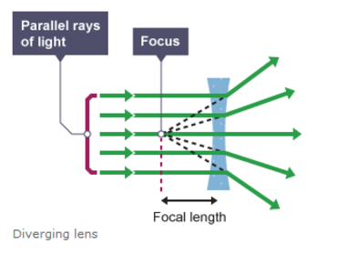 | Diverging lenses | These are thinner in the middle and are used to spread out light as it passes through the lens. |