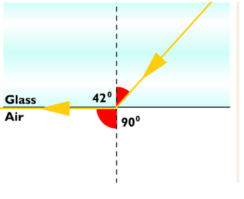 | The critical angle for most glass is about 42°. | All light waves, which hit the surface beyond this critical angle, are effectively trapped. |