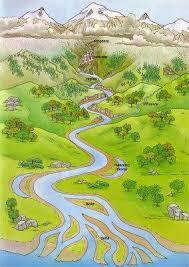 Sorgente, ruscello, torrente | La sorgente del fiume per lo più si trova in montagna dove più abbondante è la massa nevosa e dove più frequenti sono le precipitazini; via via che scorre il torrente si arricchisce dell'apporto di altri ruscelli e torrenti |