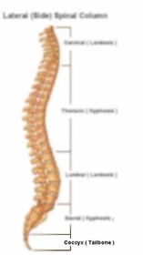 | What are the five types of Vertebral Column? (All 5 look different) | Cervical Thoracic Lumbar Sacral Coccyx |