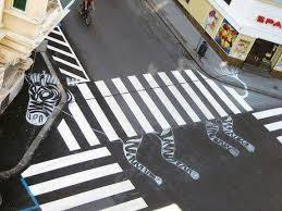 | Local señalizado mediante franjas blancas paralelas pintadas en el suelo, en el que los viandantes tienen preferencia sobre los vehículos | EL PASO DE PEATONES / PASO DE CEBRA |