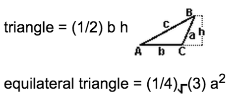 | What is the formula for area of a triangle and an equilateral triangle? | |