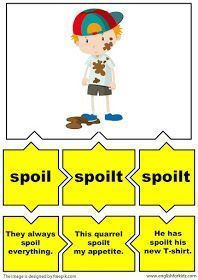 | INFINITIVE VERB: "SPOIL = ESTROPEAR" | VERB IN THE SIMPLE PAST: "SPOILT/SPOILED= ESTROPE/É/Ó/ARÓN" |