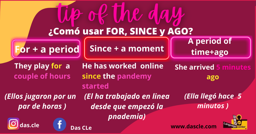 | FOR, SINCE AND AGO Hecho por: Cesar Angulo Grupo: "C" Grado: "2" | |