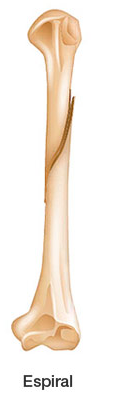 Fractura Transversal Mecanismo: Tension La linea de la fractura es mas o menos perpendicular al eje del hueso | Fractura Espiral Mecanismo: Rotacion Se produce al rededor del hueso, afecta nervios y vasos sanguineos |