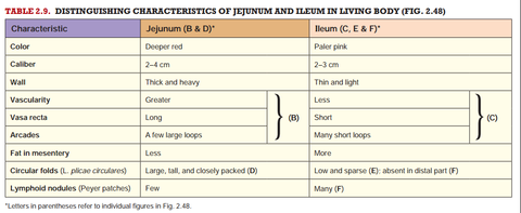 | How long are the different parts of the small intestine? | Duodenum - 25 cm Jejunum - 2.5 m Ileum - 3.5 m |