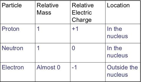 | State the Mass, Electric Charge and Location for a: Proton, Neutron and an Electron | |