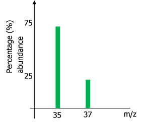 | What is the ratio of chlorine ions? | Chlorine-35 75% 25% Chlorine-37 3:1 |