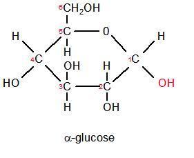 | what does an alpha glucose look like | remember to number the carbons (C) |