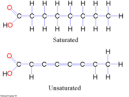 | what is the difference between saturated and un- saturated triglycerides. | saturated hydrocarbon tails have no double bonds, whereas un-saturated have at last one double bond |