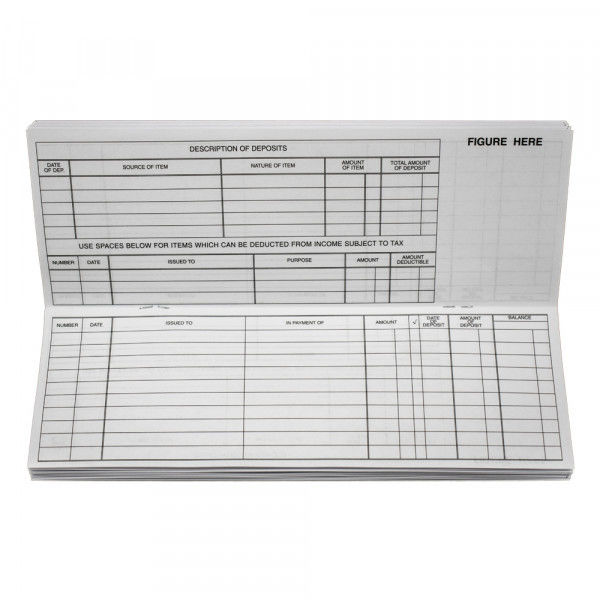 Record-keeping device that records checks paid and deposits made by companies using a checking account |